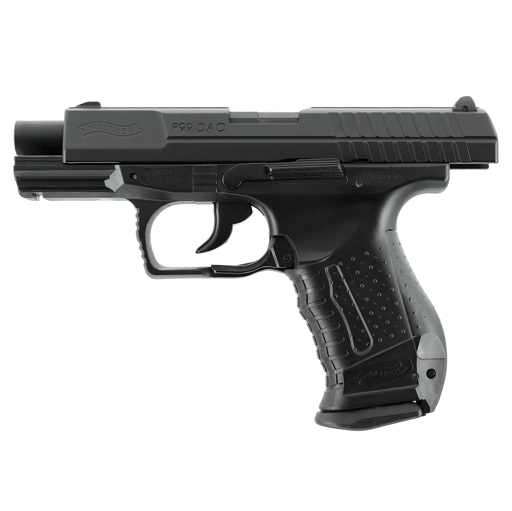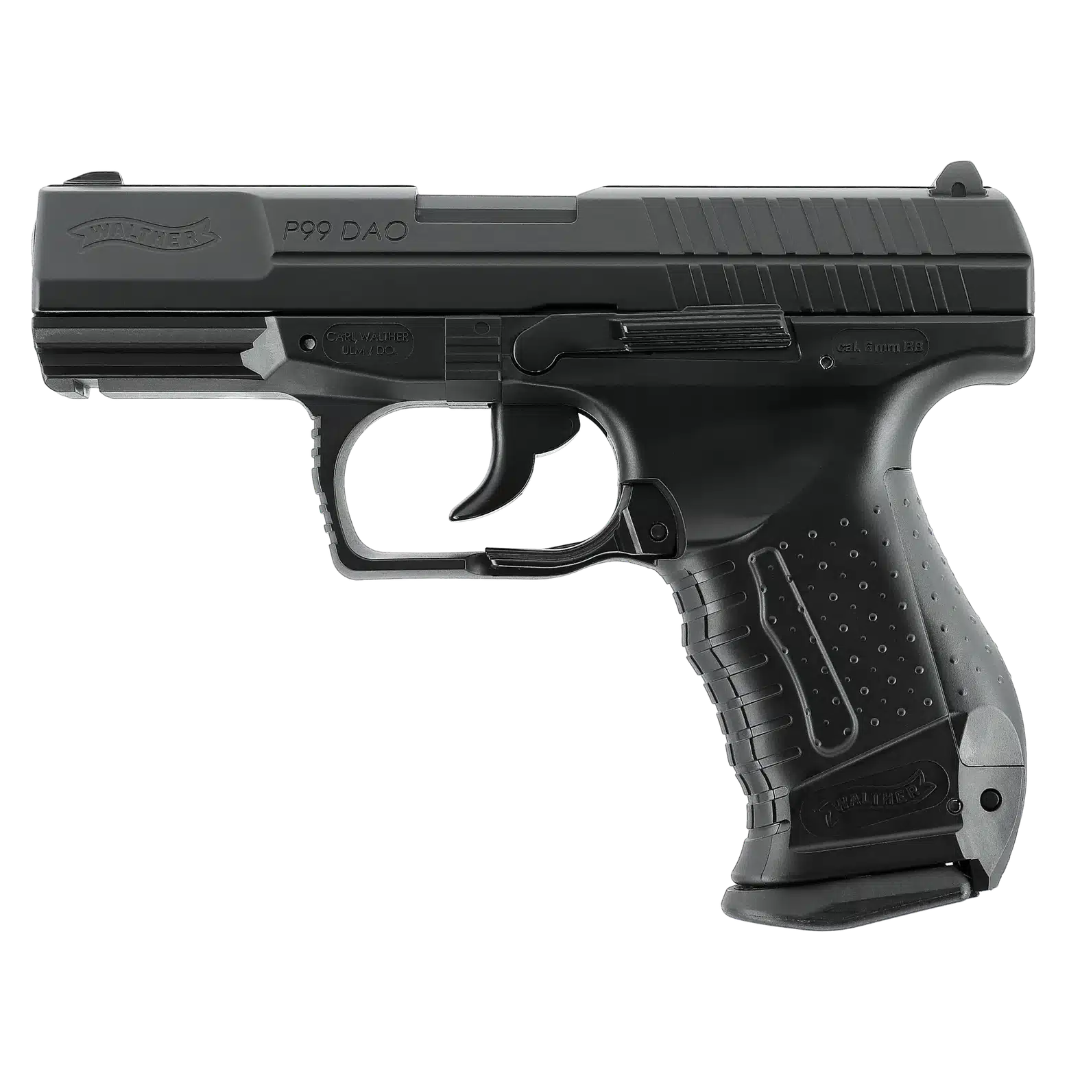 Pistol airsoft Walther P99 DAO CO2 este un produs marca Umarex Germania, cu inscriptii originale. Pistolul are recul – generat de CO2. Este o arma construita foarte inteligent, mecanismele interne fiind foarte simple. Incarcarea se face automat, nu necesita incarcarea manuala (culisarea slide-ului).