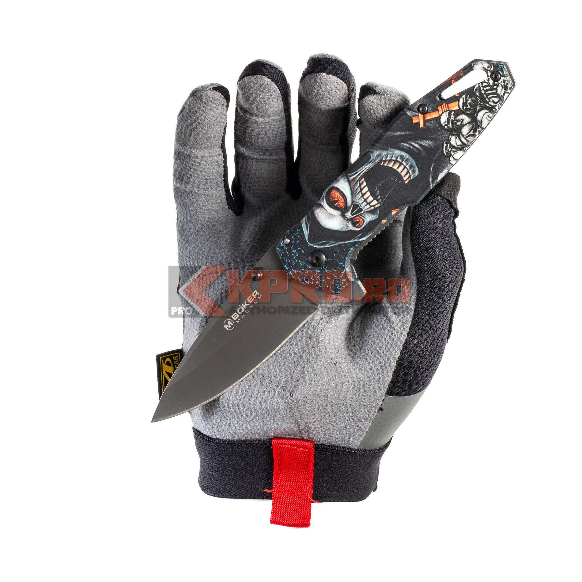 Briceag Boker Magnum Screaming Skull 01MB230 design fantasy „Screaming Skull”, lamă 440A și mecanism framelock, creat pentru impact vizual și funcționalitate practică.