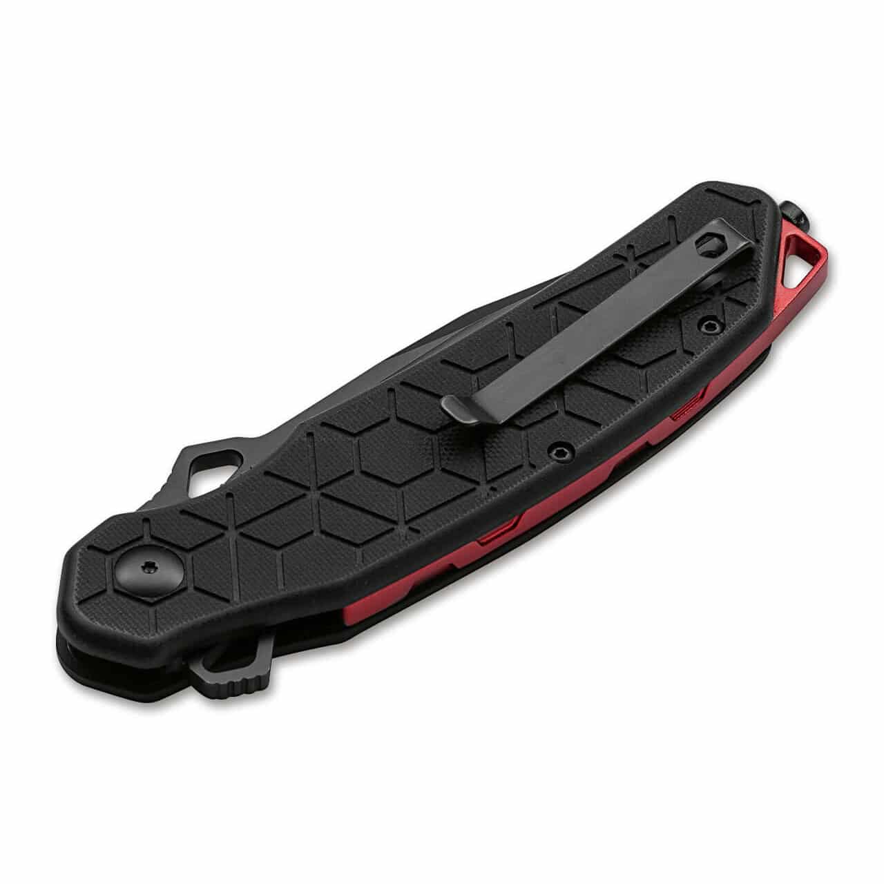 Briceagul Yokai dispune de orificiu pentru șnur, spargător de geam și clip de buzunar (poziționare tip-up).