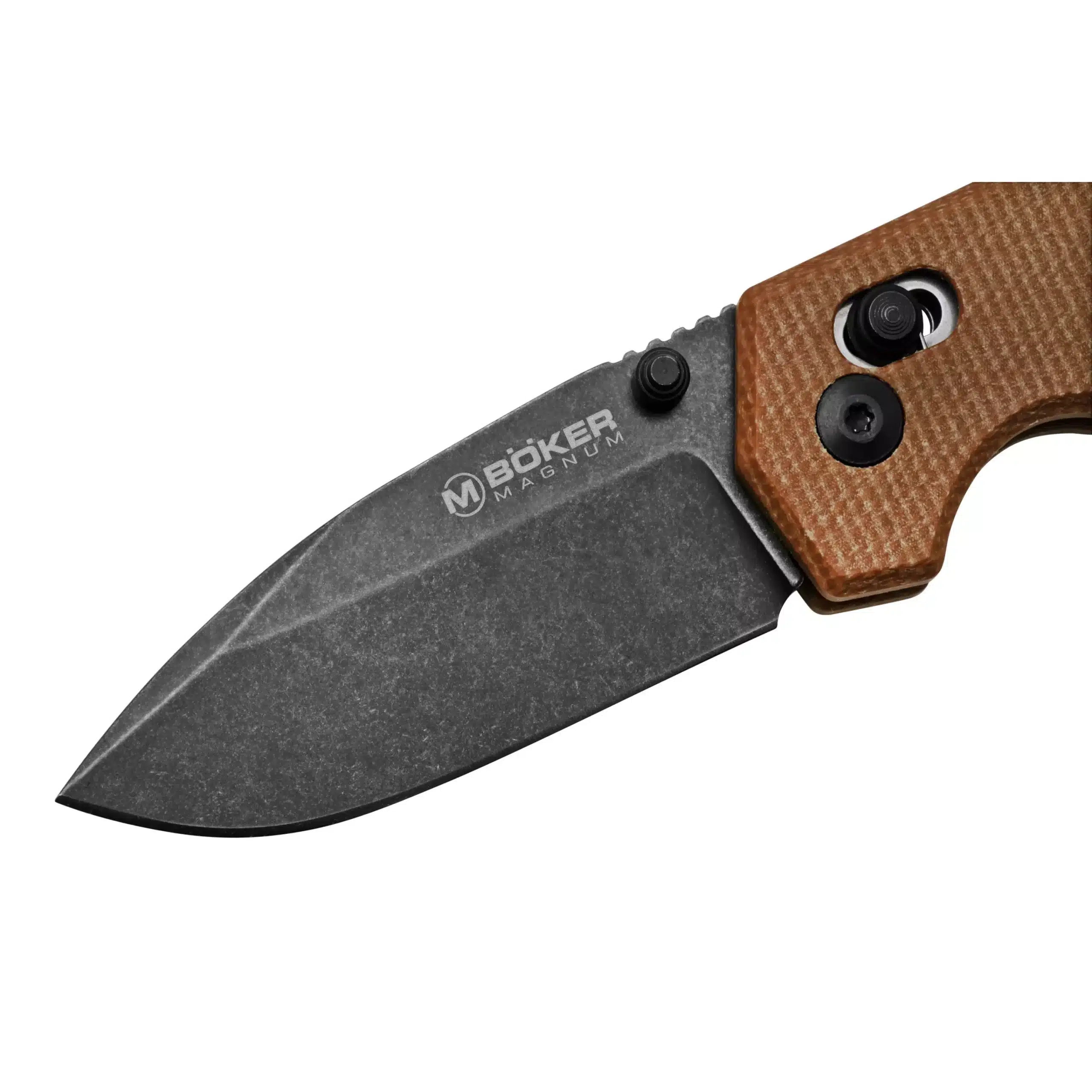 Briceag compact Boker Magnum Rockstub Brown Micarta compact, cu lamă oțel 440B și mâner din Micarta maro, conceput pentru utilizare EDC.
