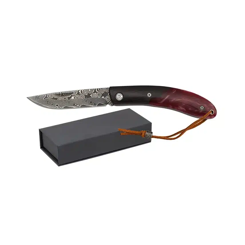 Briceag Damasc Albainox Negru/Rosu din rasina si abanos 18997