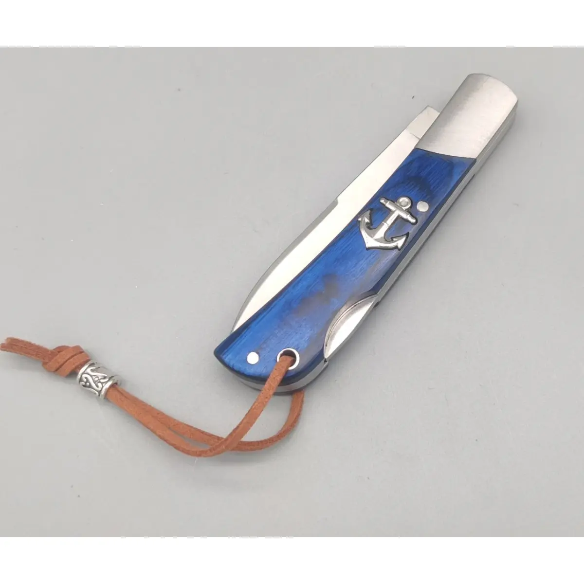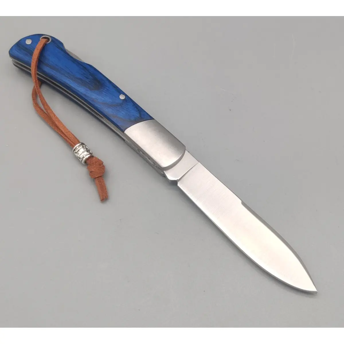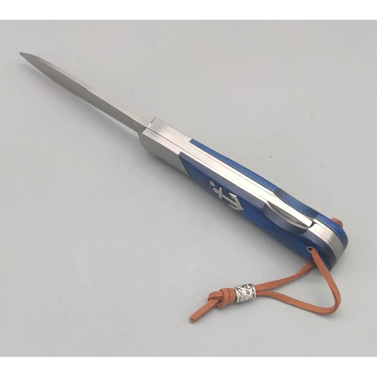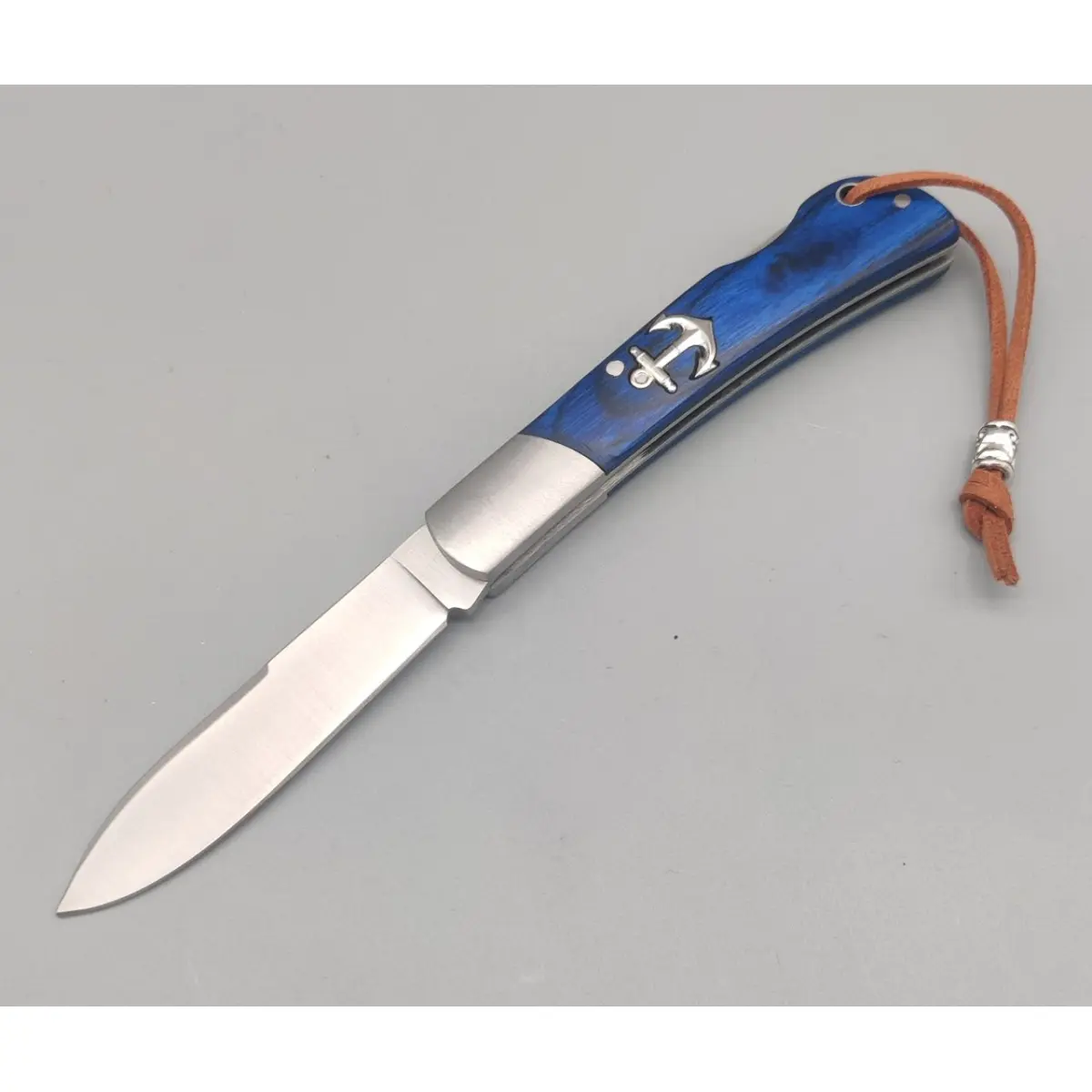 Mânerul este realizat din stamina albastru, un material rezistent și plăcut la atingere, completat de inserții metalice din oțel și o ferulă bine finisată.