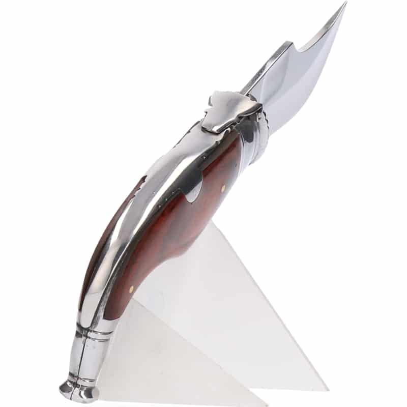 Acest cuțit de buzunar este perfect pentru cei care caută un echilibru între estetică și funcționalitate. Designul ergonomic al mânerului din lemn stratificat oferă o priză sigură, iar lama din oțel inoxidabil 3Cr13Mov garantează durabilitate și performanță în timp.