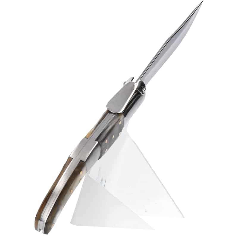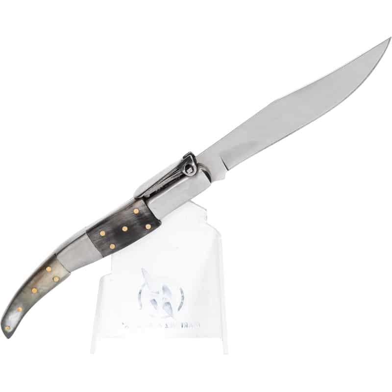 Cu un design inspirat din modelele tradiționale, acest cuțit este ideal atât pentru uz zilnic, cât și pentru colecționari. Mânerul din corn natural adaugă un plus de autenticitate, iar mecanismul ratchet oferă un control mai bun asupra lamei.