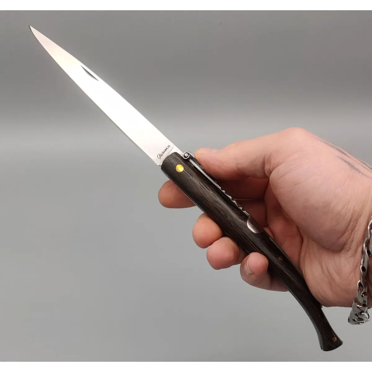 Cu o lamă de 12 cm din oțel inoxidabil și un mâner din lemn, acest briceag emană eleganță și simplitate.