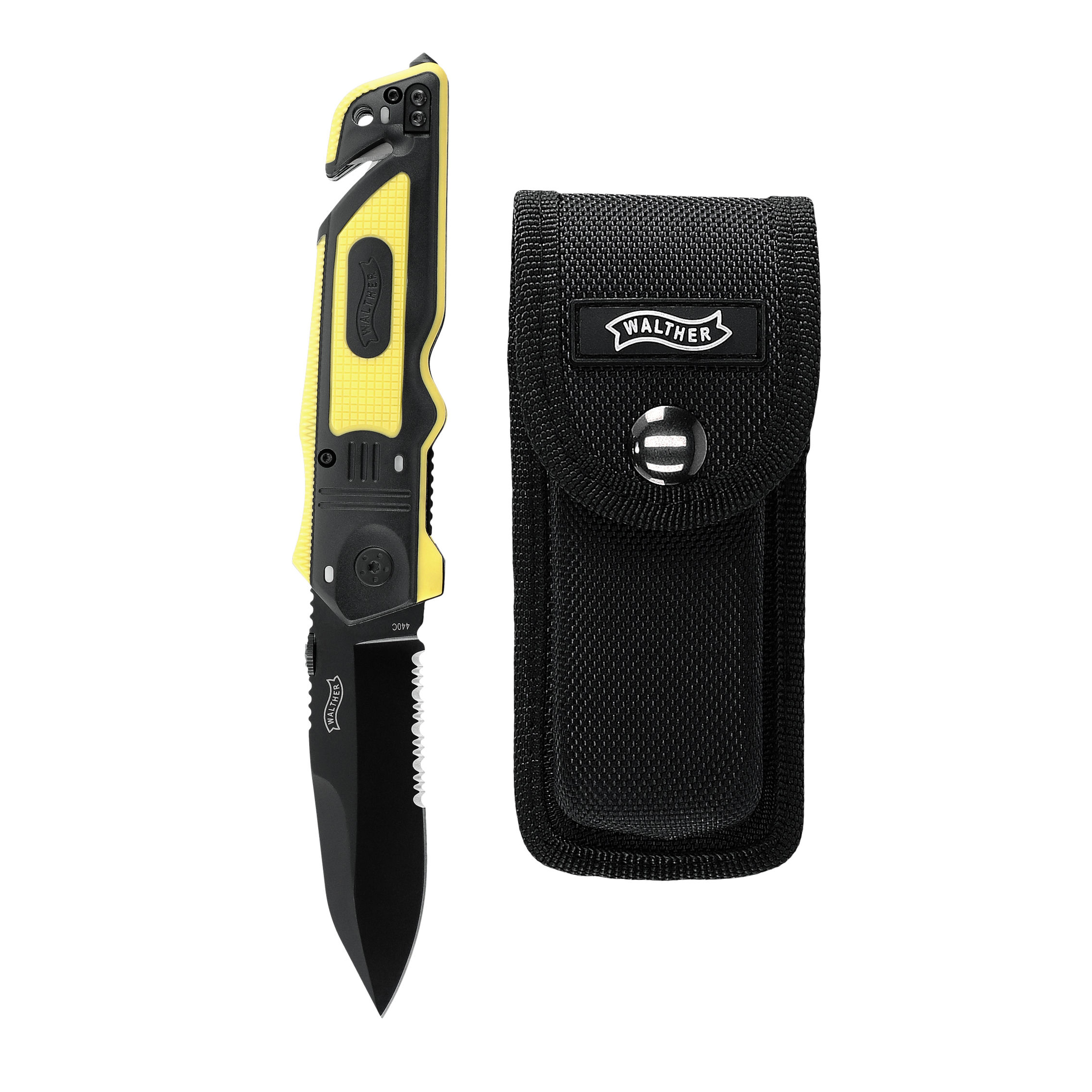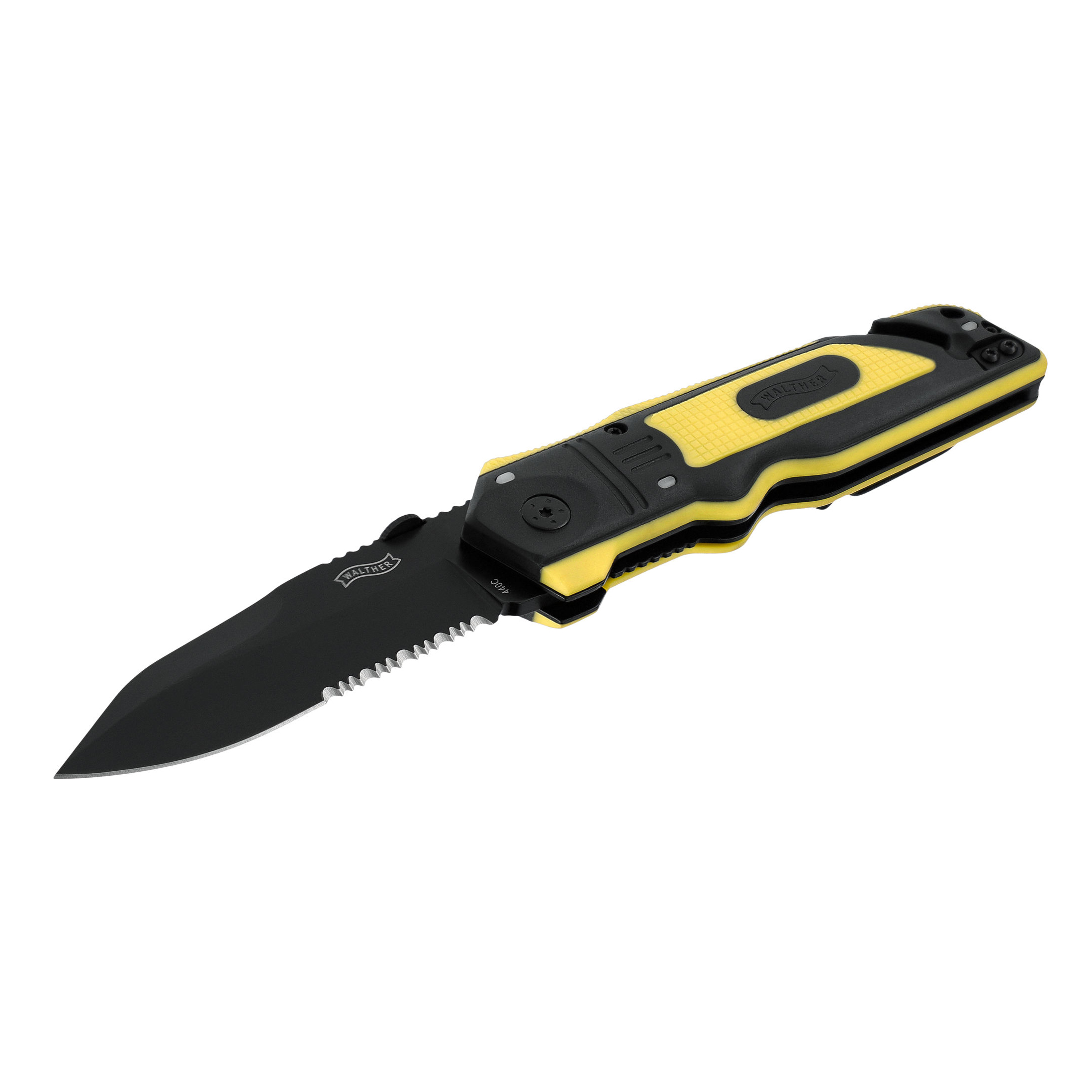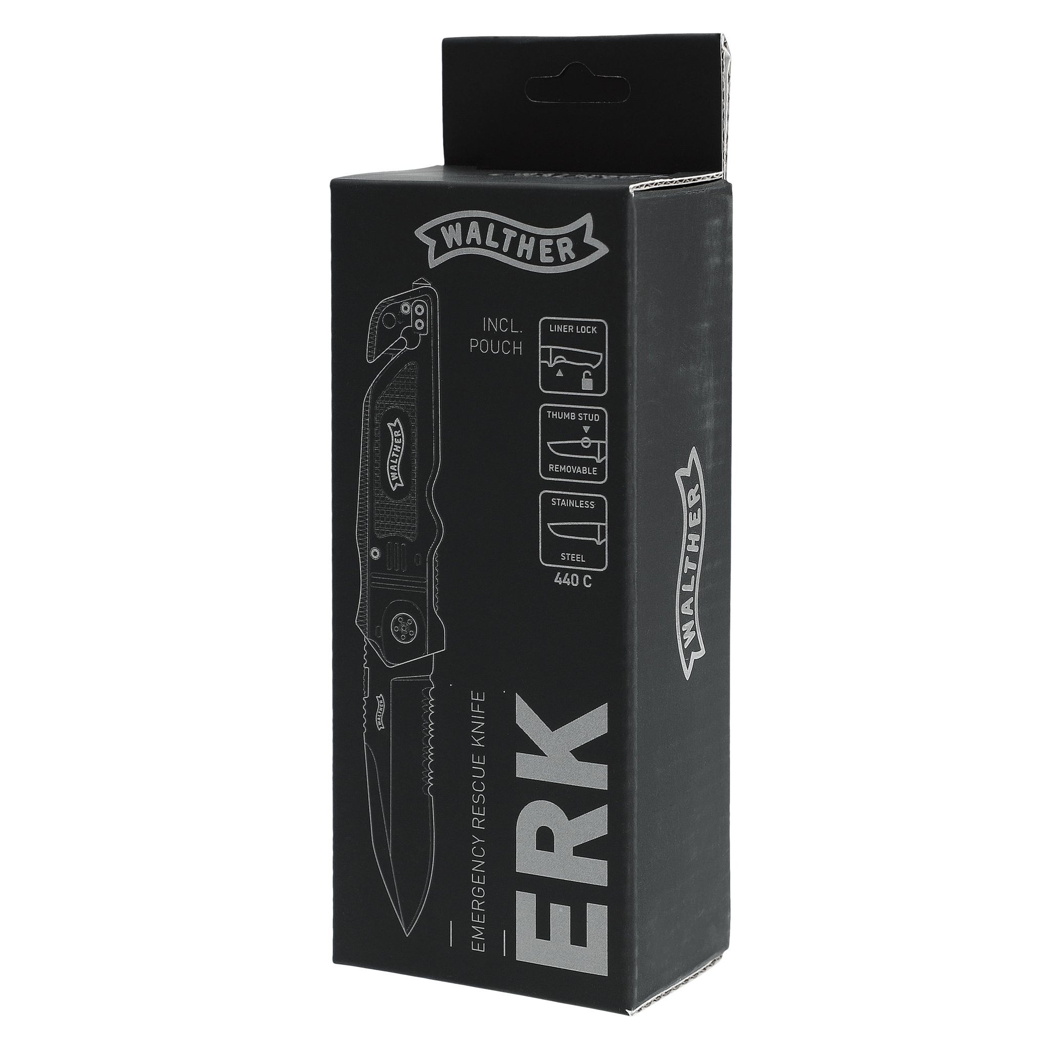 Briceag supravietuire Walther ERK Fosforescent este prevazut cu o lama din otel inoxidabil 440C, sistem de deschidere cu o mana, sistem de blocare, lama cu finisaj negru.