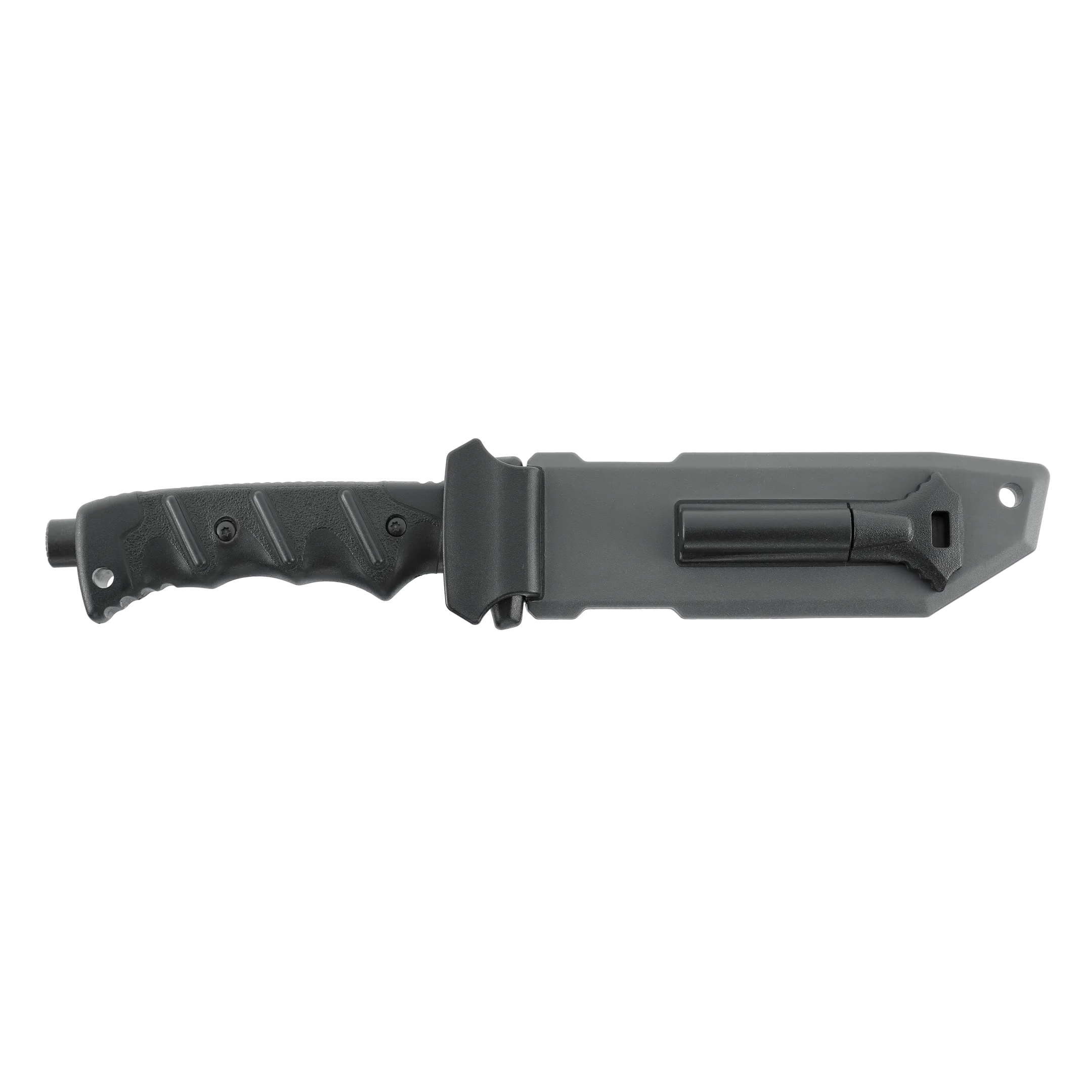 Cutitul are o structura robusta, lama fiind din otel 440C, cu finisaj de culoare neagra si o parte serata. Cutitul de supravietuire este prevazut si cu ciocan in spatele manerului.