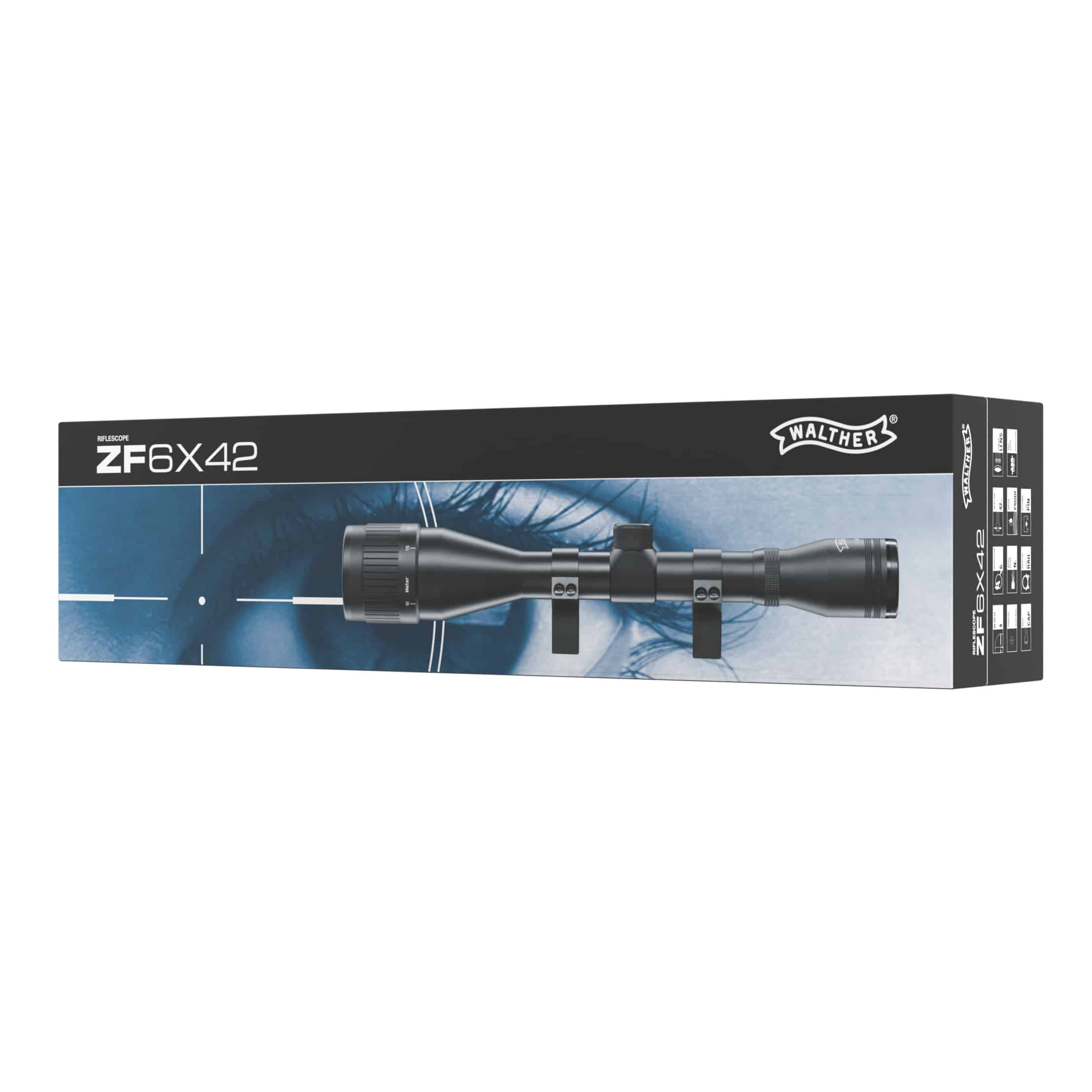 Luneta Walther ZF 6×42 paralaxa ajustabila este produsa de Umarex Germania sub numele Walther. Acest model e special pentru arme de calibru mare, ce au un recul puternic.